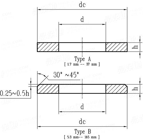 | ①,标準原文(wén)中Φ119對(duì)應dc最小(xiǎo)值為(wèi)188.15,但(dàn)此處對(duì)應的☆(de)偏差應為(wèi)1.85mm,即實際最小(xiǎo)值為(wèi)200-1.85=198.15 mm。(DIN522中規定當h小(xi↓ǎo)于4且産品等級為(wèi)A級時(shí),d2的(de)尺寸公差為(wèi)h15,當dc為(wèi)200mm₹時(shí)對(duì)應的(de)偏差為(wèi)1.85mm)。 ②,材料: 1)鋼 硬度等級140HV,硬度HV140-250;硬度等級200HV,硬度HV200-250 2)不(bù)鏽鋼 硬度等級140HV,硬度HV140-250;硬度等級200HV,硬度HV200-250;不(bù)鏽鋼組别A2和(hé)A4、F1、C1和(hé)C4 3)根據協議(yì),墊圈可(kě)由有(yǒu)色金(jīn)屬或其他(tā)材料制(zhì)成 4)h不(bù)超過0.5 mm時(shí),硬度等級為(wèi)HV 2, h超過0.5 mm時(shí),硬度等級為(wèi)HV 10。(見(jiàn)原件(jiàn)技(jì∑)術(shù)條件(jiàn)) |